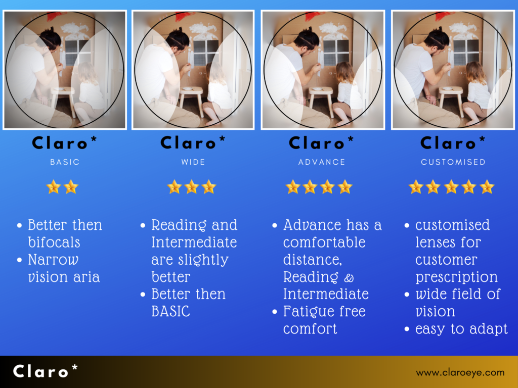 Progressive lenses are a type of lens which have no differentiating lines between the focal distances. These have three different levels of focal distances ranging from distance to near. They have no visible lines, so they can be considered a better pair of progressive lenses than single or bifocal lenses.
